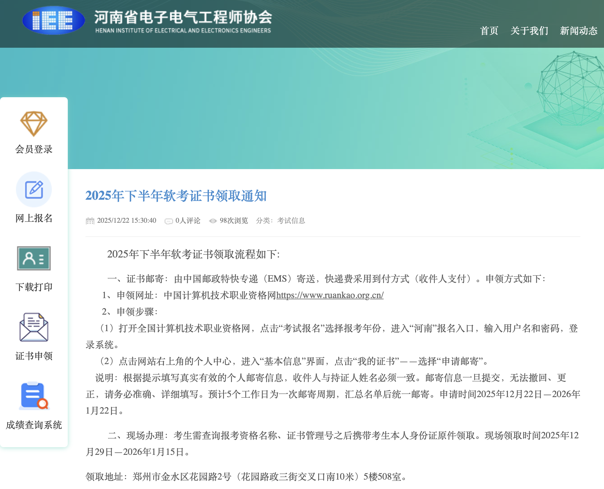 点击查看河南考区软考证书领取原文