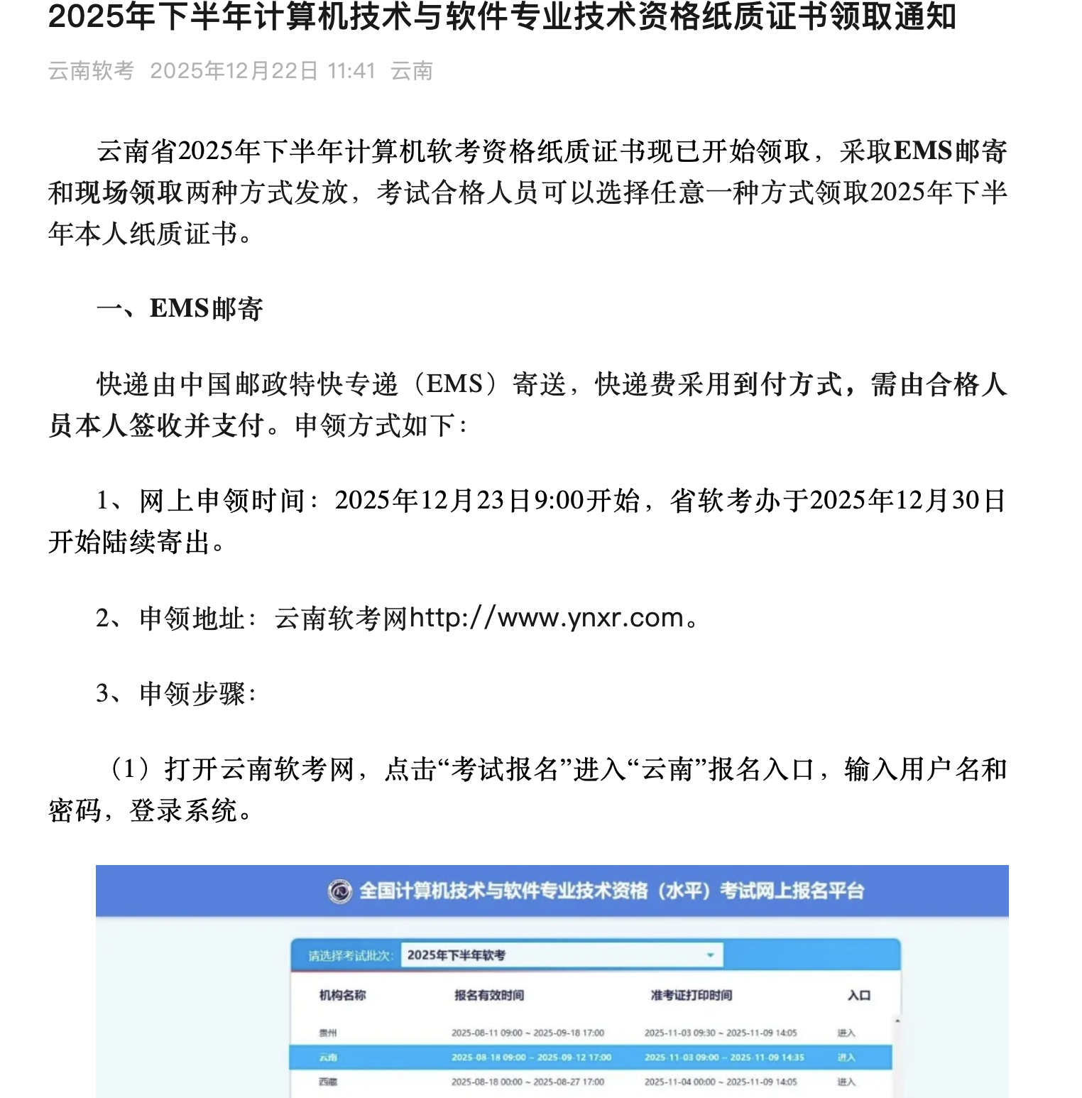 点击查看云南考区软考证书领取通知原文