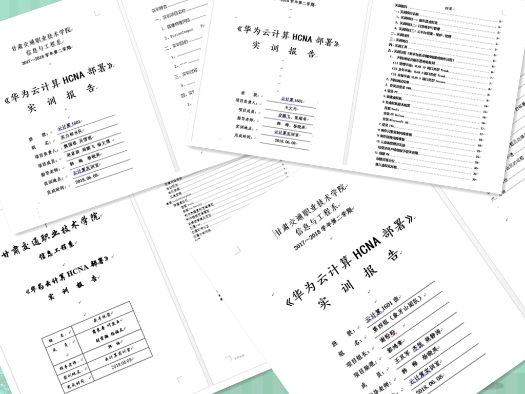 2018年6月4日---8日,甘肃交通职业技术学院信息工程系16级云计算1班的37位同学们,在东方瑞通韩梅老师的指导下完成为期5天的《华为云计算HCNA部署》实训课程。